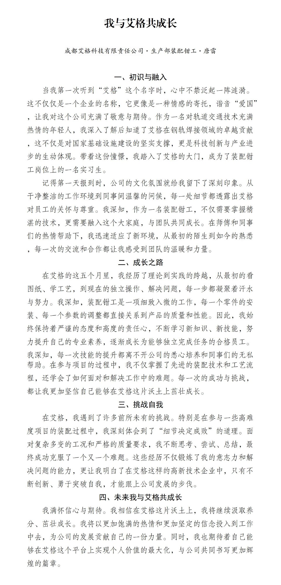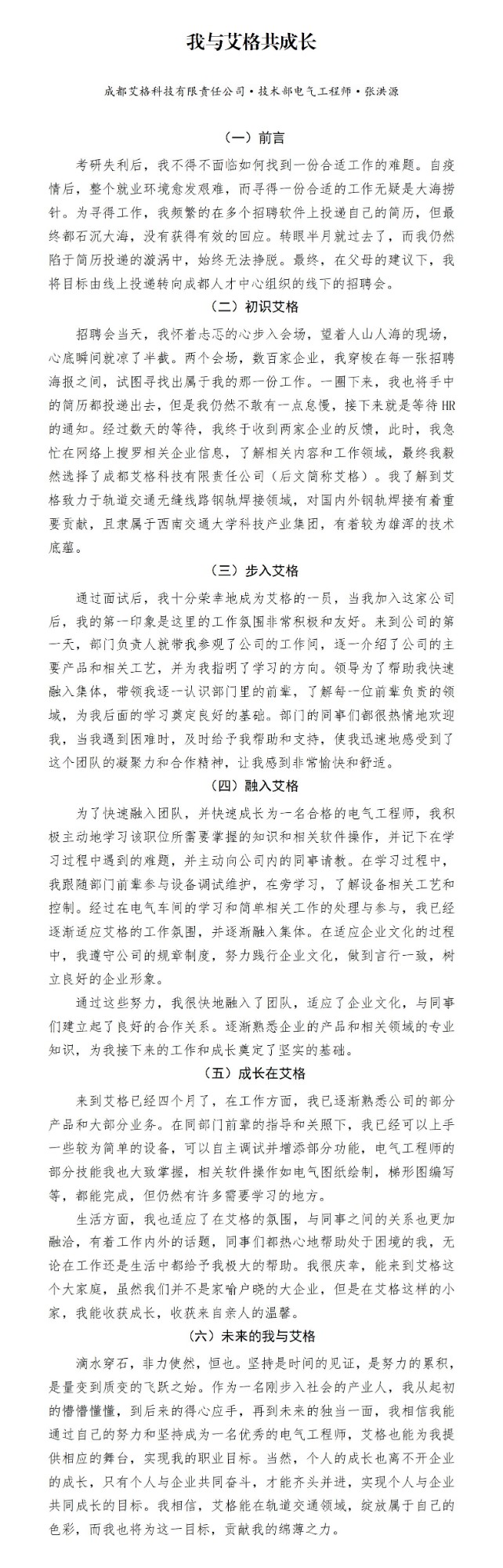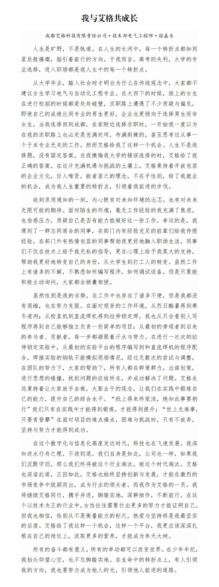“我與艾格共成長”征文