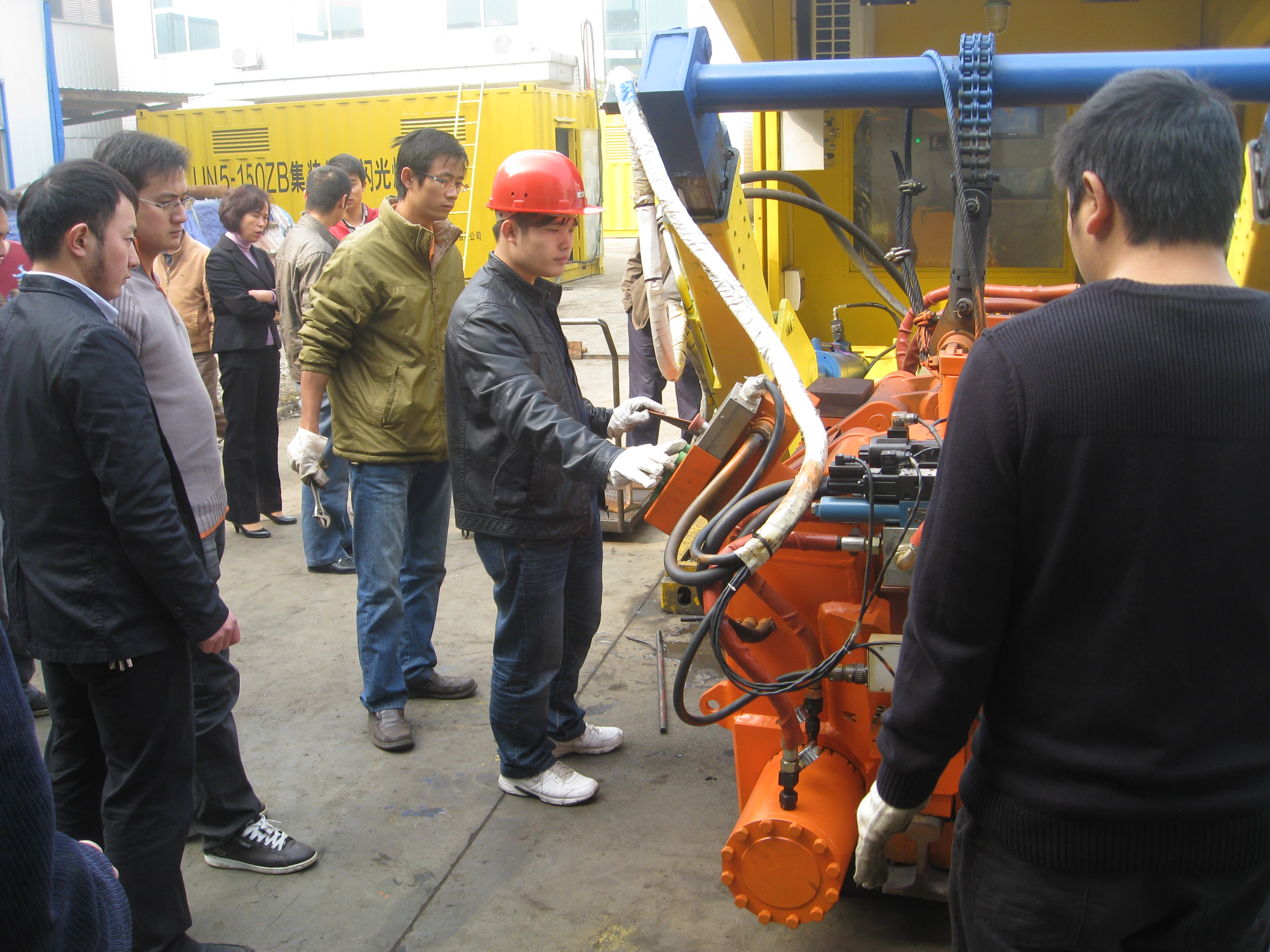 August 30, 2010, China Railway No.5 Engineering Group Co., Ltd. came to Aigre for pre-acceptance of welding machine. After a series of test such as inspection of welder appearance, inspection of control procedures, rail grinding after welding and etc., the welder has met the use requirements. The welder will then sent to Tianjin project department.