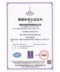 Certificate of Management System Certification ISO45001(Chinese Version)